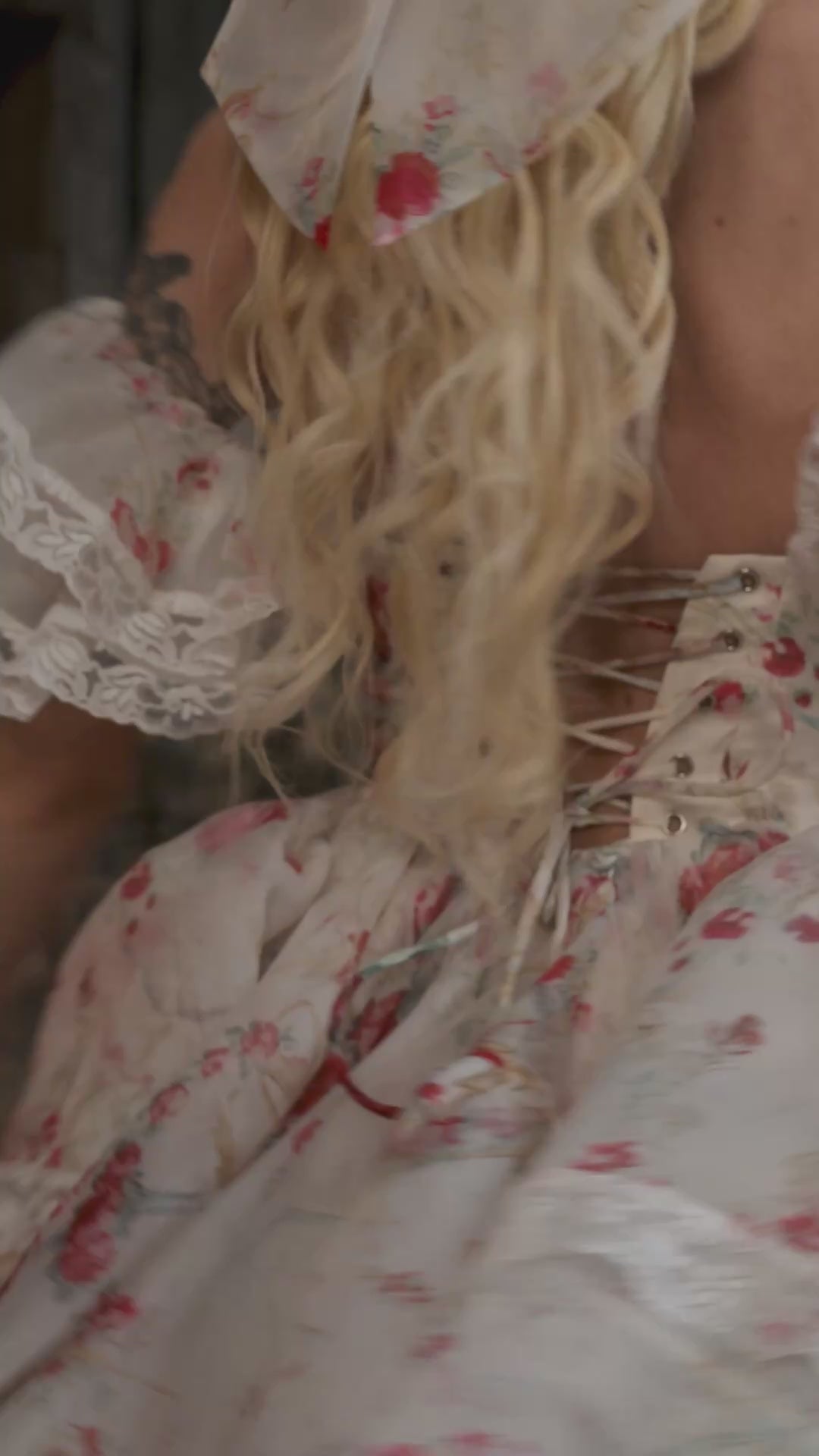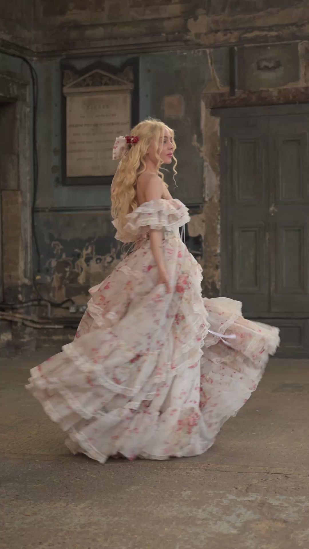 - Multi-layered organza skirt with curtain front design, styled after Marie Antoinette's famous gowns