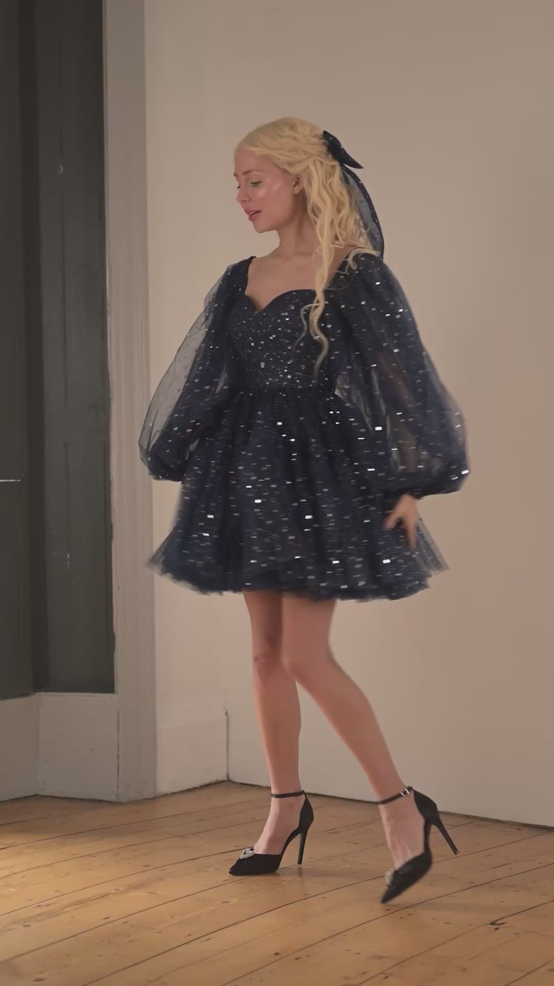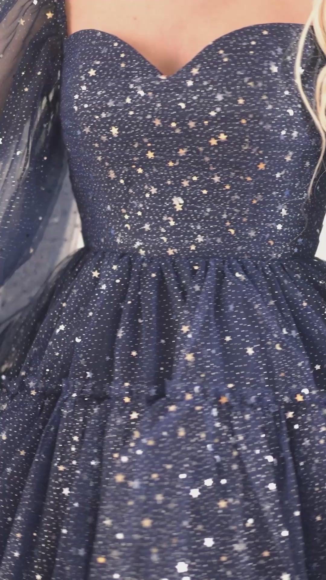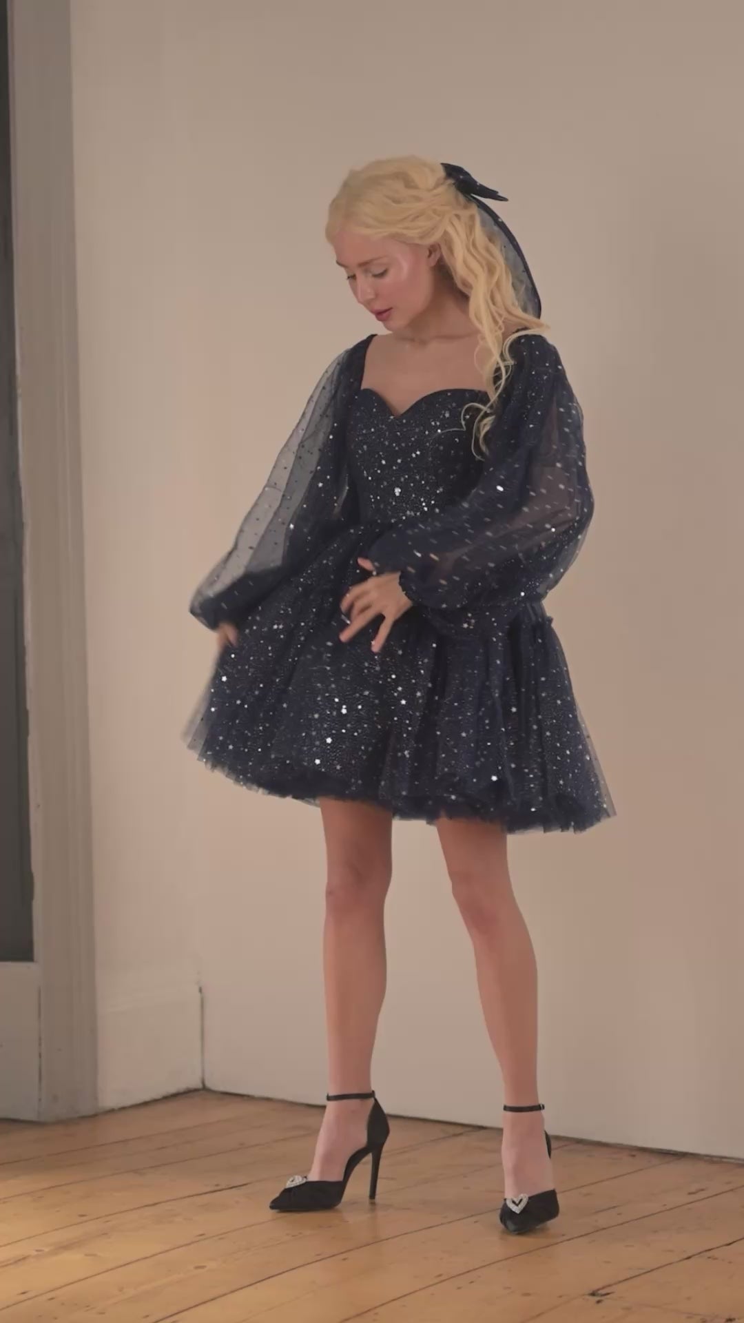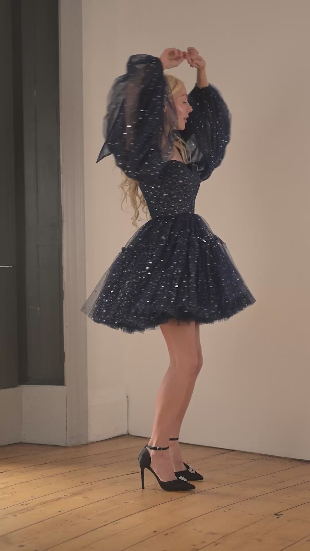- Premium tulle mini dress adorned with shimmering stars and moons