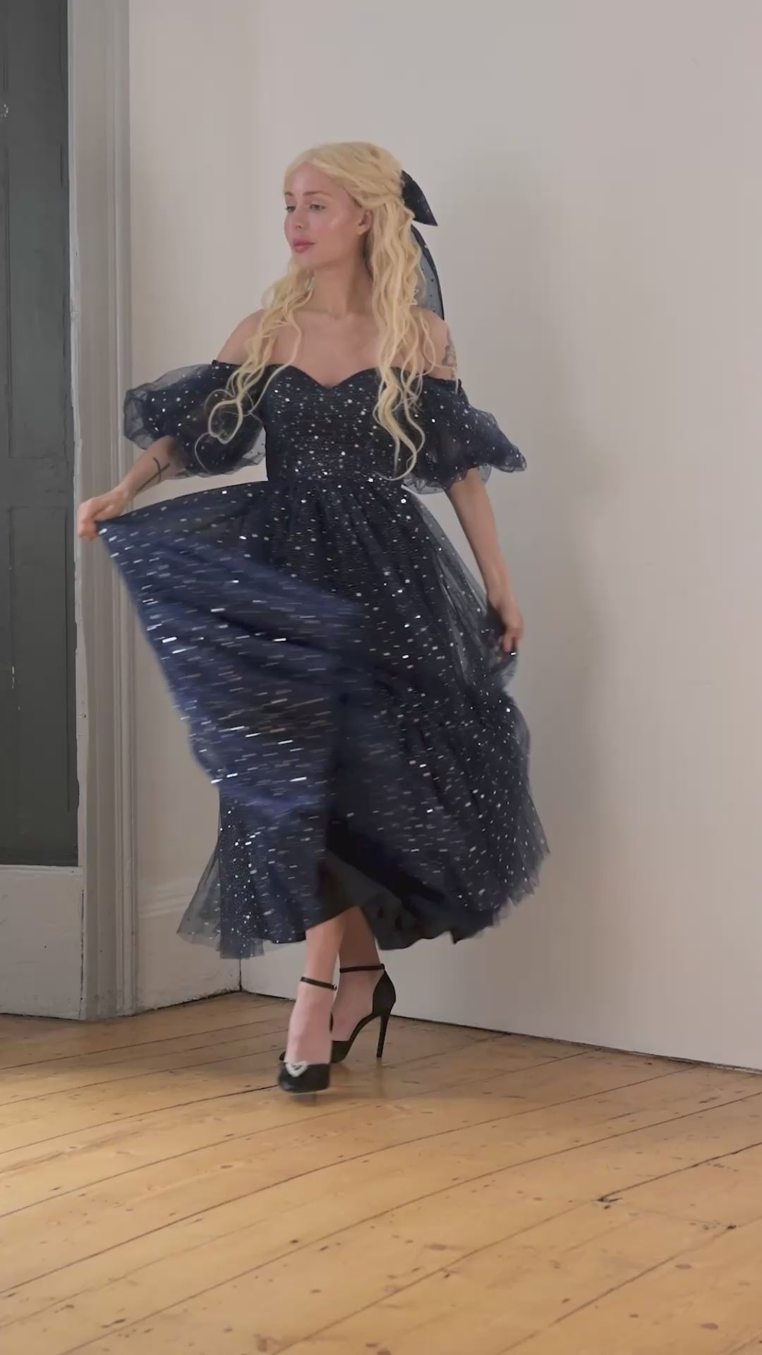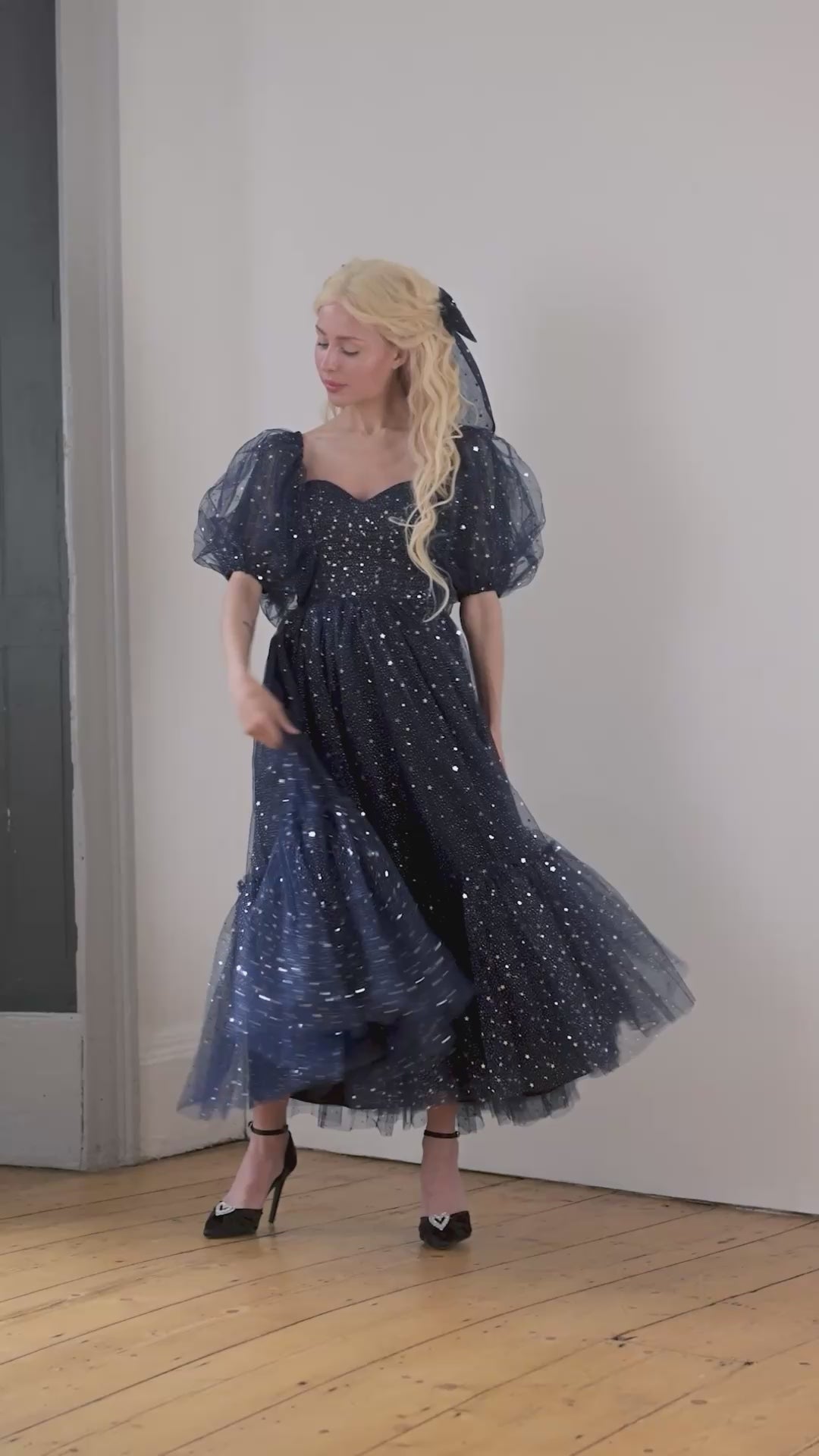 Shine brighter than the night sky in the enchanting Cosmic Stargazer Dress.