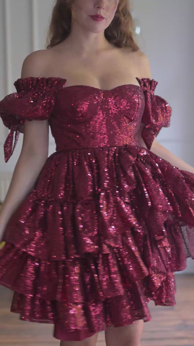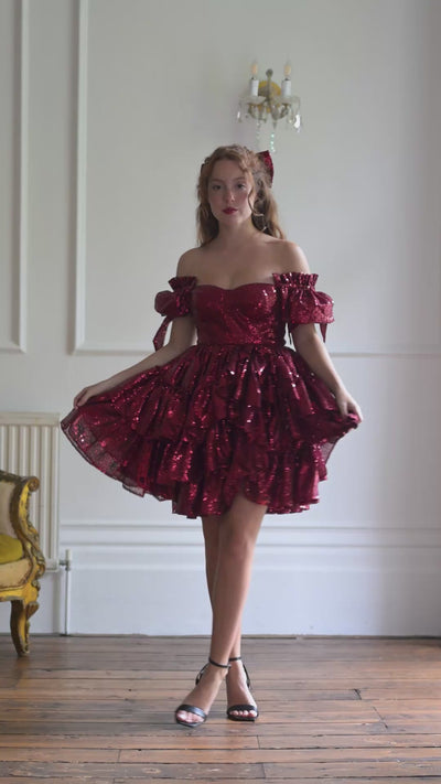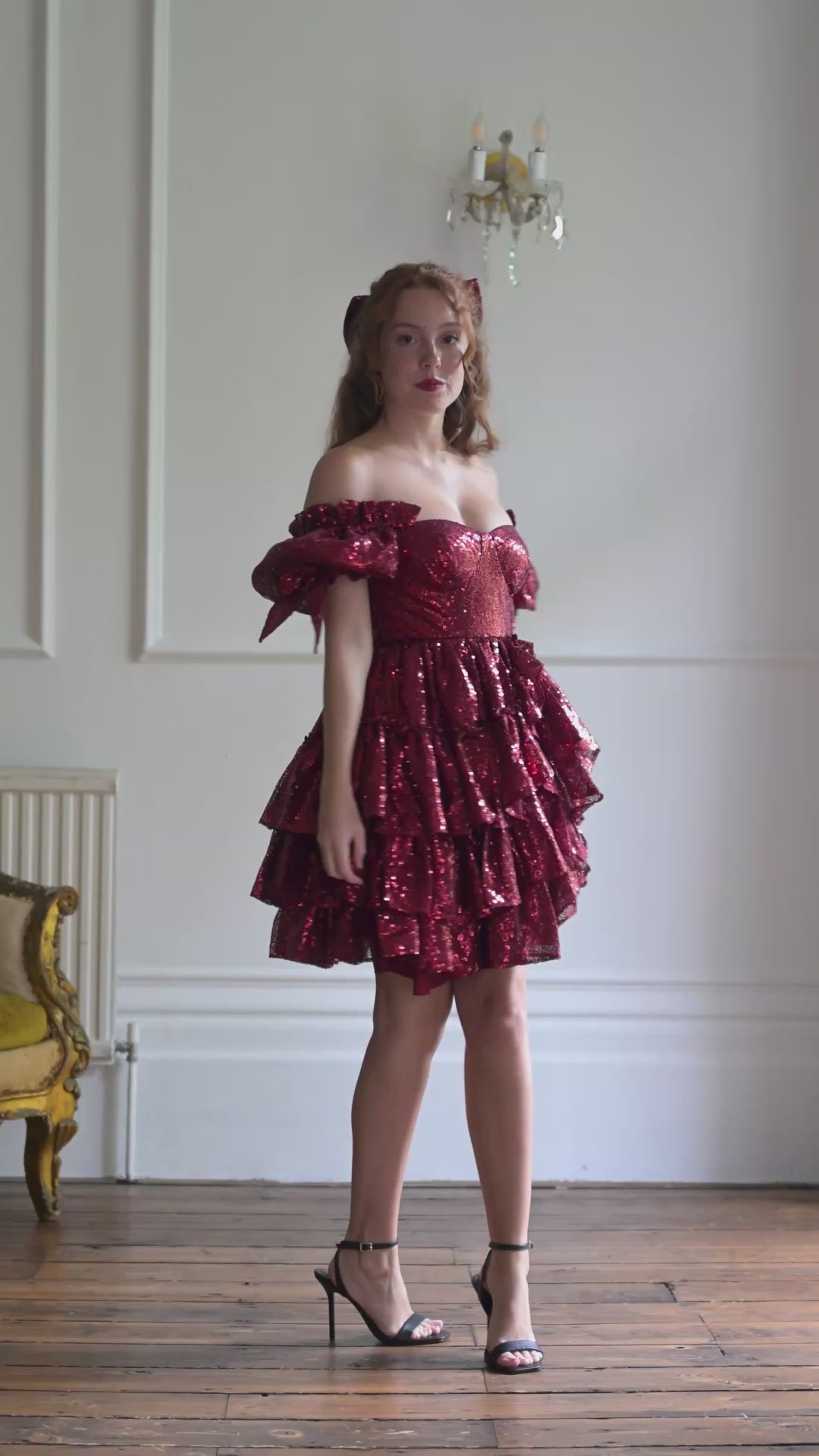 - Exquisite sequin fabric in our Rouge Étoile shade