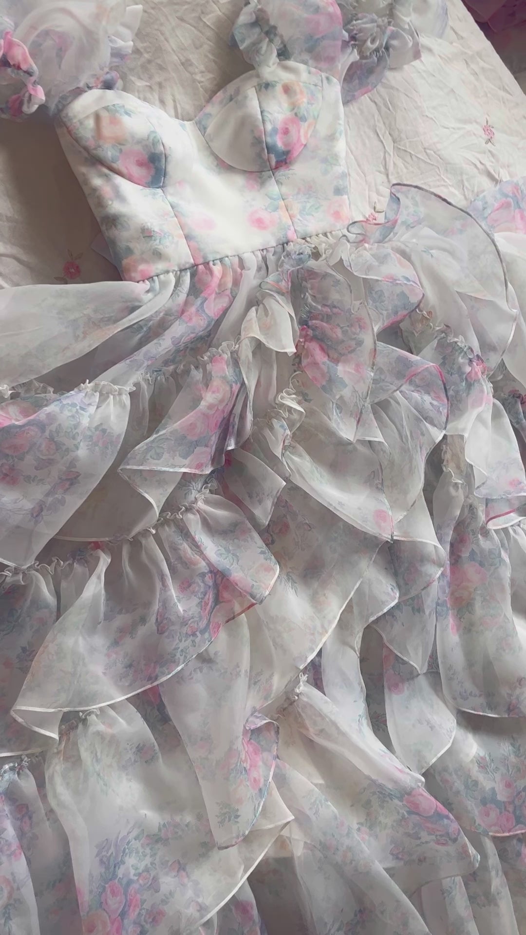 - Exquisitely romantic gown with 3 tiers of cascading ruffles