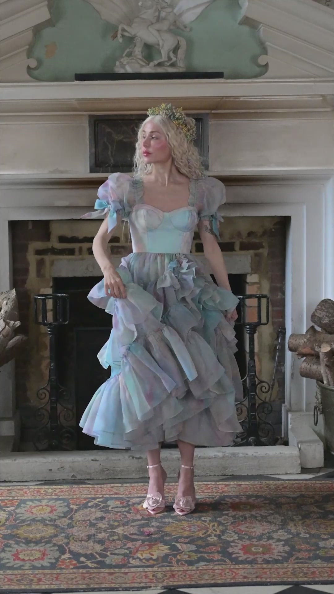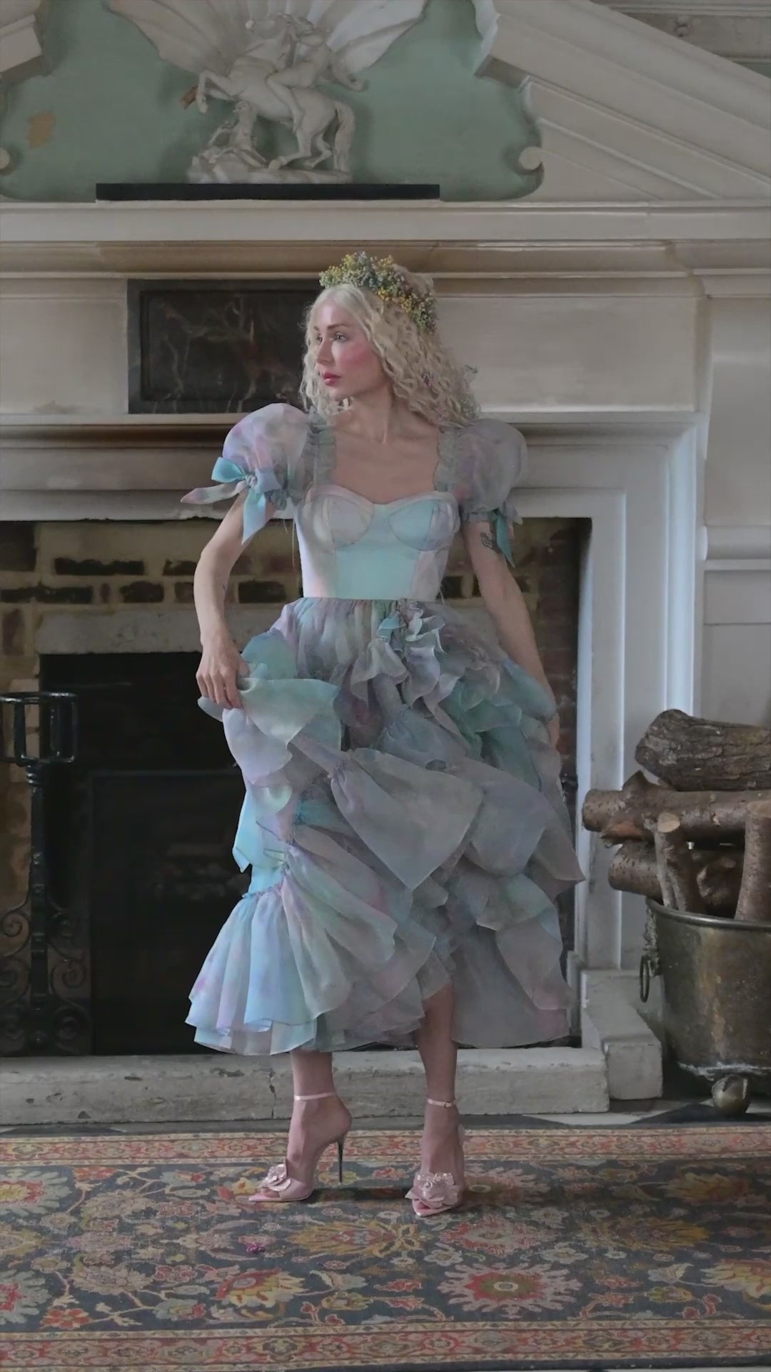 Step into the role of a mythical heroine in this gorgeously romantic dress. Watch as the bountiful ruffles cascade down the skirt, evoking a sense of movement and majesty, whilst the corseted bodice nips in your waist, giving a feminine silhouette Aphrodite would be envious of.